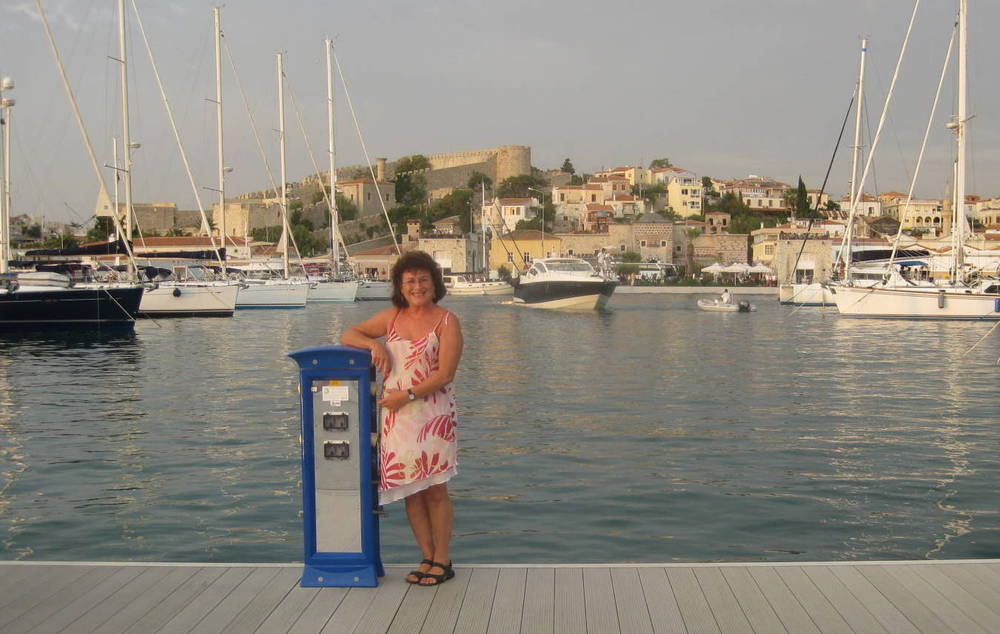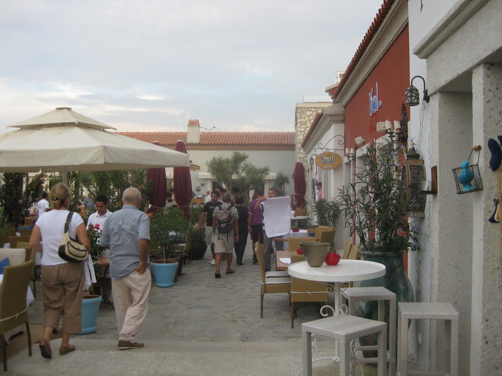 ler an und beleuchten ganz dezent das kleine Marina-Dorf mit den vielen Baustilen und Häuschen, Brücklein, Innenhöfen. Ich mache ganz begeistert noch einige Fotos von der eingefügten orientalischen Pracht, das schmiedeeiserne Portal, die Keramikschüsseln als Waschbecken in dem himmelblauen Dusche-Bau, die bemalten Wände, eine Töpferin, die große Zier-Übertöpfe von Hand bemalt, die luxuriösen Auslagen in den Boutiquen. Wir werden ein farbiges Bild im Herzen bewahren und viele sehr freundliche türkische Menschen!