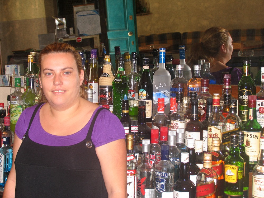 Bei Espresso und einem heißen Nescafé (mit festem kaltem Milschschaum!) erzählt uns die junge Wirtin von der Insel. Sie selbst stammt von IOS, ja, die Liebe führte sie nach Sikinos. Ihre Bar ist 12 Monate geöffnet, aber im Winter ist wenig Betrieb. Das riesige vielfältige Alkohol-Angebot könnte mehr Kundschaft beglücke.Es gibt 200 Einwohner. Das Wasser kommt aus Athen, mit dem Schiff!