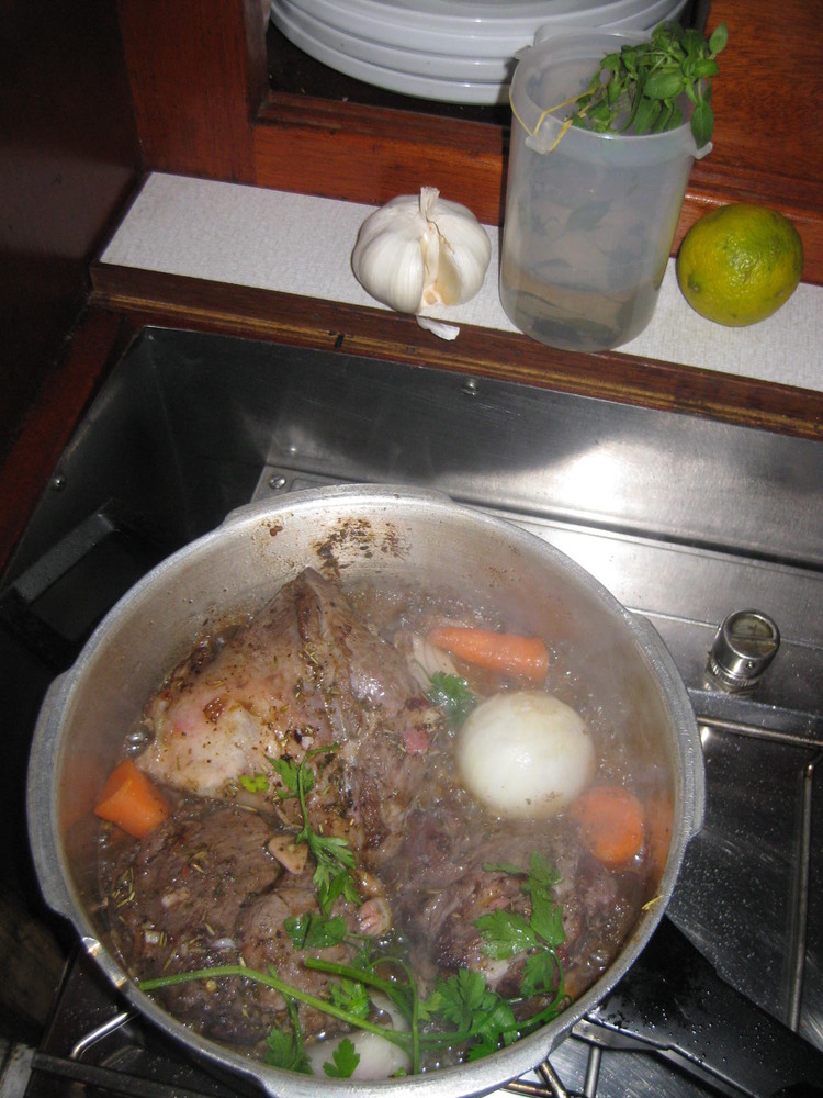 Wir gönnen uns aber auch Pausen für gutes Essen oder Kaffee mit den für die jonischen Inseln typischen Zimt-Nelke-Kringeln und Gewürzzöpfchen mit Sesam drauf. Mmmmh. Abends gibt’s Retzina und Pistazien, dicke Wälzer werden fertig gelesen… Am vorletzten Abend duftet die EOS nach der köstlichen Lammkeule, die nach 30 Minuten im 40 Jahre alten Fissler-Schnellkochtopf gar ist!