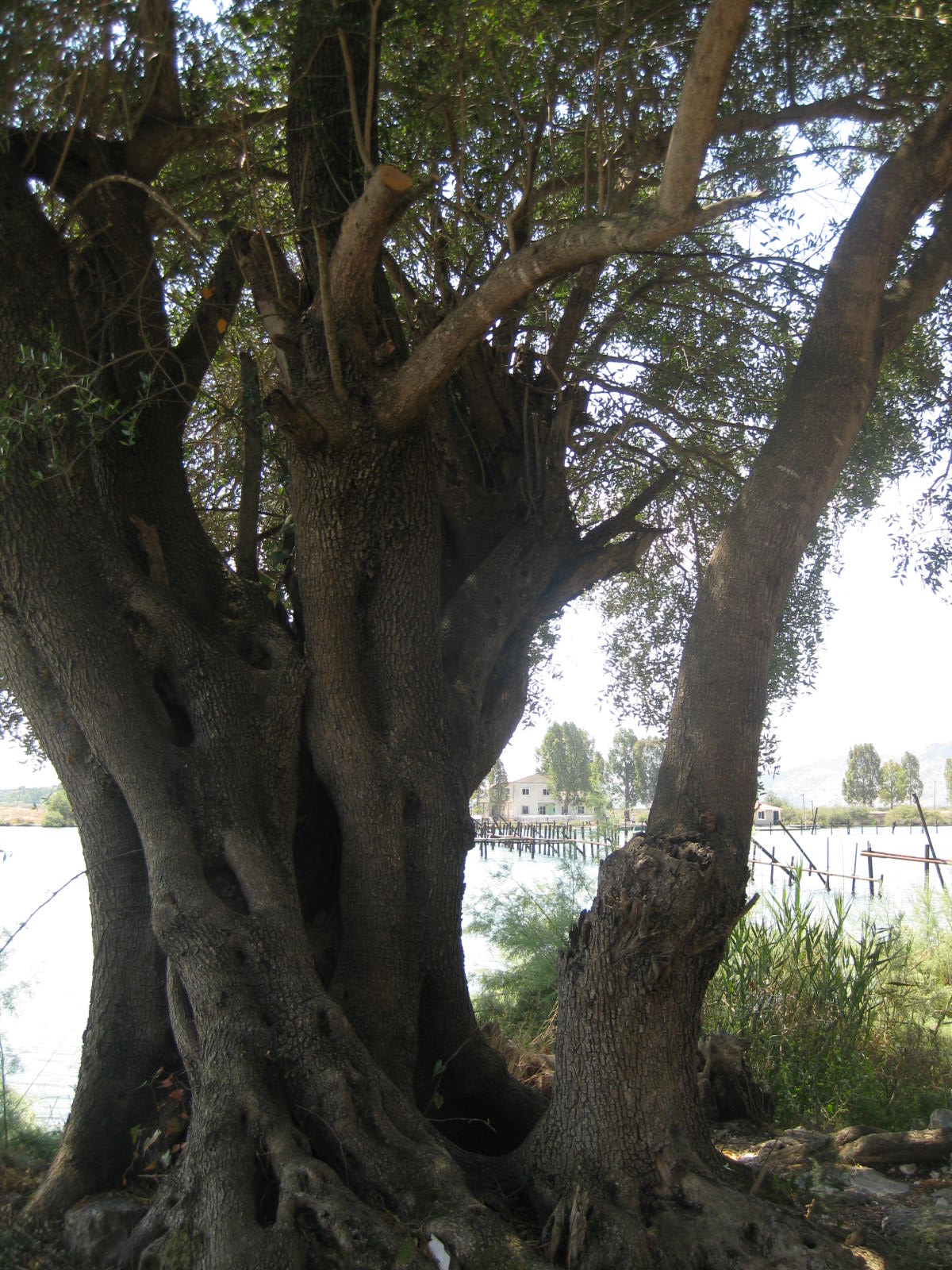 Traumhafte Ruhe am SeefREIGELEGTE mOSAIKENChristliche Kirche, Ruine im schattigen LAUBWALDLorbeerbaum der alten GriechenUralter Olivenbaum