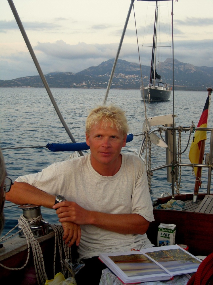 Am Samstag ankert neben uns wieder die kleine SY des Engländers aus Devon, 24 feet, die „Tankard“. Er kommt uns besuchen, weil er sich für das Flötenkonzert am Abend vorher in der stillen Bucht bedanken will. Ein Busfahrer( In Dublin), 1 Jahr arbeiten, 2 J. segeln. Ein erfrischender semmelblonder Abenteurer, 32 J. alt, fast wie Joachim…