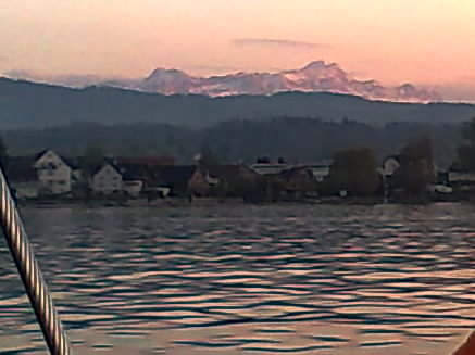 3 Tages-Törn zu zweit: 12.-14.April. Schon 17 Tage waren wir mit dem Schiff draußen im jungen Jahr 2014.  Diesmal haben wir 2x vor Anker übernachtet. Der See hat 9 °C, die Luft ca. 12°-15°. Wir segelten hinter die Mainau. Friedlich, keine Touristen, wenig Segler. Nach ruhiger Nacht kreuzten wir rüber zum Schweizer Ufer, auffrischender Wind… in Arbon fällt der Anker. Ich bediente zum 1. Mal die elektrische Ankerwinsch!