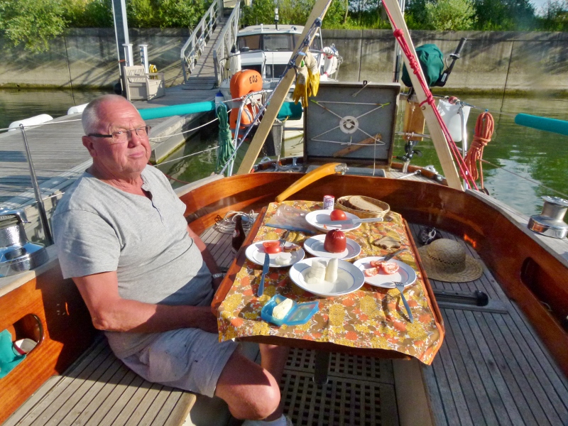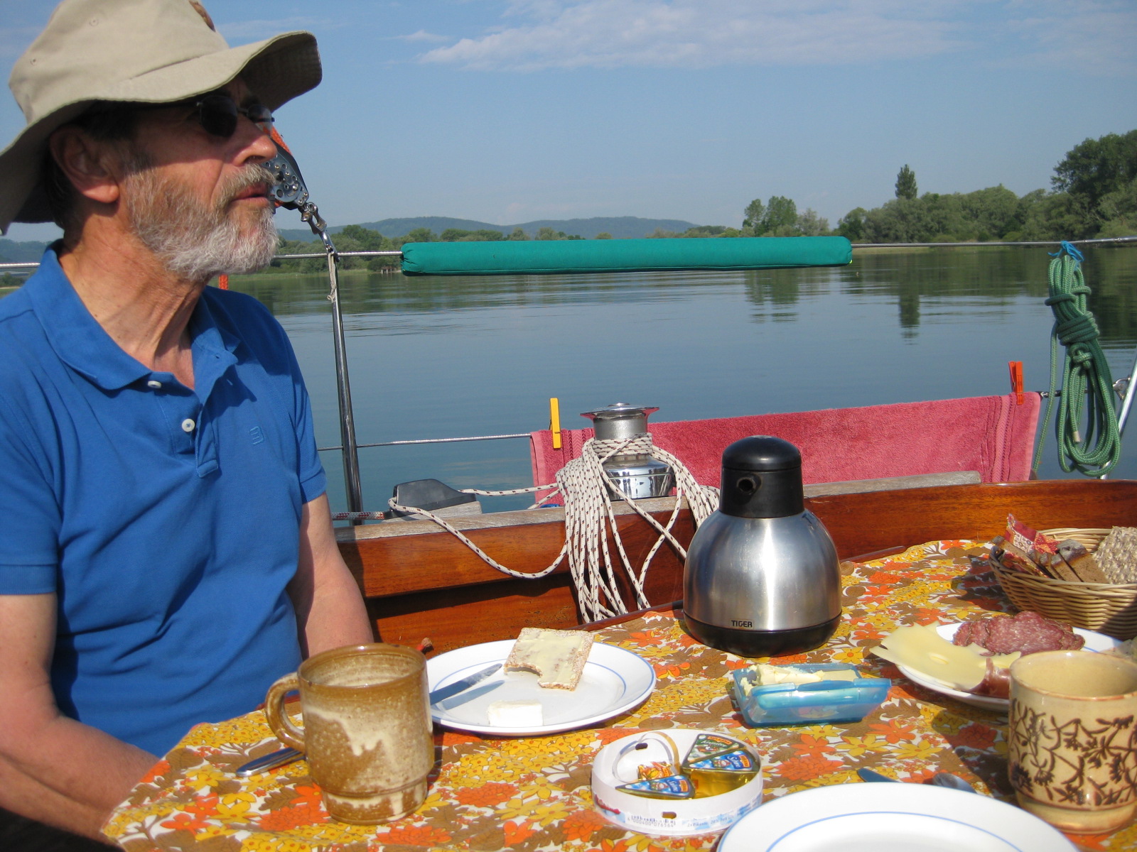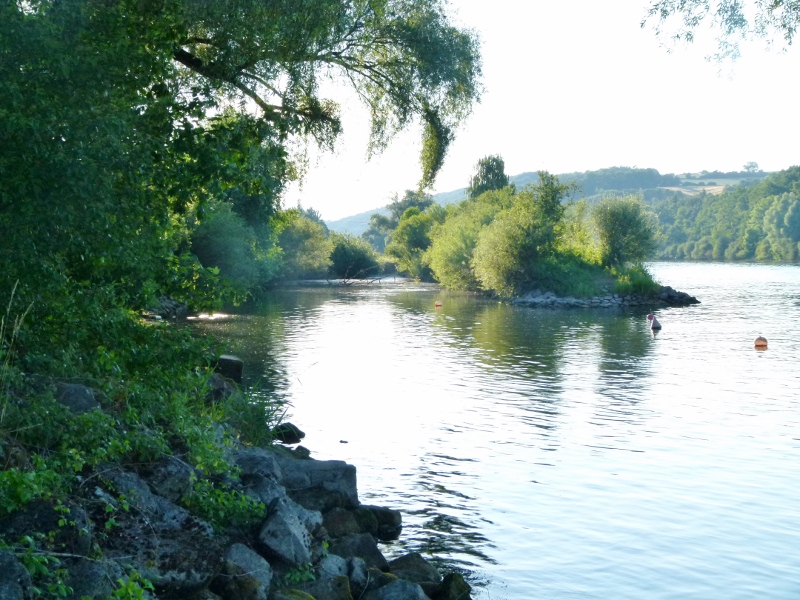 Eine schöne Reise bis hierher, rote und grüne Tonnen markieren das Fahrwasser bestens. Vor den Schleusen ein Anruf aufs Handy und wir wissen, wann die Einfahrt „grün“ zeigt. In weiten Bögen begleiten uns bewaldete Hügel, durchsetzt mit Felsen (Erika, zum Klettern!). Wir haben es nicht eilig und so verlangen wir dem Motor nur niedere Drehzahlen ab.