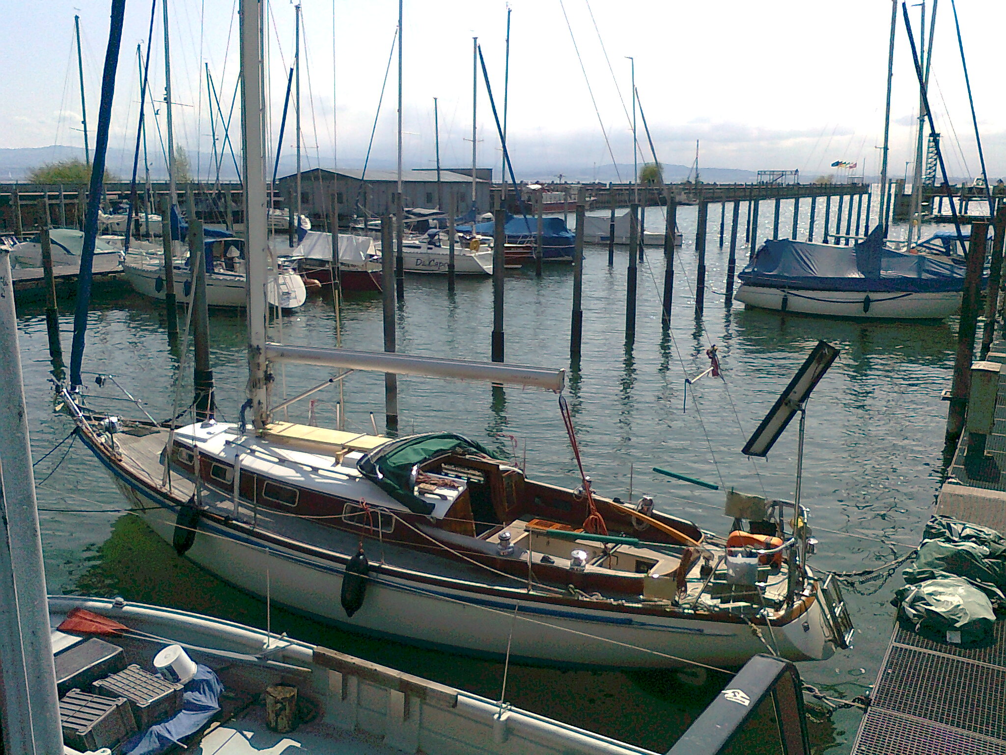 Ruhig hier im südlichen Arm der Donau – nach einer kurzen Passage durch die Steinerne Brücke. Puh, das waren 2 spannende Minuten durch den engen südlichen Bogen. Immer stärker wurde die Strömung vor der Brücke und die Wassertiefe immer weniger. Motor 2000 upm, wir stehen fast, dann schleichen wir uns in den Bogen ein. Maximale Motorkraft, 2500 upm, weiter, Meter für Meter in Schleichfahrt, 0,5m Wassertiefe, 0,3, 0,2 Meter unter dem Kiel, dann sind wir durch, die Strömung mäßigt sich und die Wassertiefe nimmt wieder zu, der Herzschlag sinkt. Der Volvo ist heiß…