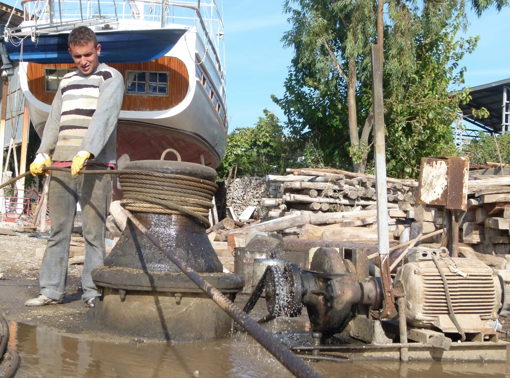 Neben „meinem“ Duo arbeiten noch eine ganze Reihe freiberufliche Bootsbauer. Es gibt ja im Winter viel zu tun, weil aus vielen Gulets Wasser rinnt. Im Sommer fahren einige die Gäste oder sie arbeiten an einem Neubau.