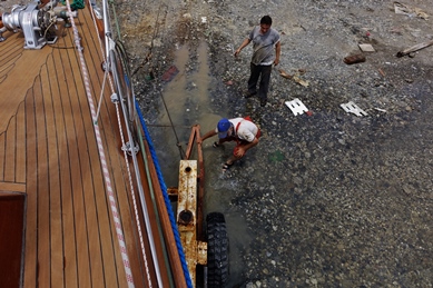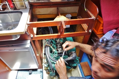 Wir genießen weiterhin in bester Laune unsere motor-bedingte Zwangspause wie einen Erholungsurlaub, das Schwimmen im Meer ist Wellness pur und die Ruhe sicher so heilsam wie ein Ayurveda-Seminar…( Ich lese inzw. S. 420 der 800 S. des so sprachlich so wunderbar geschriebenen Buches von Fabienne: „Noch eine Runde auf dem Karussell – vom Leben und Sterben“ des krebskranken berühmten Spiegel-Journalisten und Kriegsreporters Tiziano Terzani! Ich lese es nur an Bord, seit 2 Jahren. Aber zwischendurch las ich Romanas Buch einer Bengalin, die einen Sari-Laden in Seattle führt. Viel Tradition… viel Vorschriften im Leben- und am Ende der Befreiungsschlag: keine organisierte Hochzeit in Indien, sondern ein Bekenntnis zur „Liebe auf den 1. Blick“ .(Anjali Banerjee: „Der Hochzeitssari“, bei Weltbild)… Lesen ist Luxus…