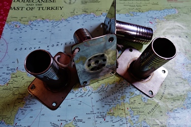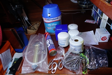 Geruhsam und ohne Termine hängen wir mit unsrer EOS seit 14 Tagen am Anker und starten auf Ventile für den Volvo-Motor. Es ist noch nicht heiß, keine 30°, viele Arbeiten können erledigt werden, Ölwechsel, Schrauben erneuern und nachziehen, das neue noch reh-braune Iroko-Holzdeck mit Meerwasser wässern, damit es grau(er) wird, Felshügel besteigen vorm Frühstück und Blog schreiben, häkeln, flicken, T-Shirts umräumen – ohne Schrank eine wahre Kunst. Heute hab ich mir die beiden Nähzeugkistle vorgenommen, ausbreiten, entsorgen (da sind Fäden drin von Muttis Nähkasten- 70 Jahre altes Garn, Knöpfe von meinen eignen Kinderpullovern und etliches von den Babytagen unsrer 3 Kinder…
