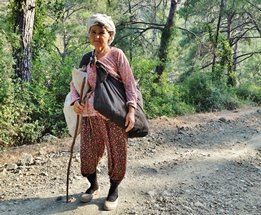 Nur 1 Mädchen blieb einsam voll bekleidet draußen stehen, weiße Bluse, heller Faltenrock, lange weiße Strumpfhosen, weiße Lederschuhe, Seidenkopftuch, eng gebunden… sie blieb abseits, durfte mal den Ball holen, und dabei hätte sie so gern Volleyball gespielt, auch Fußball konnte sie gut… Zu den Jungs traute sie sich nicht, die andren sehr wohl, adrett im Bikini, forsch die langen schwarzen offnen glänzenden Haare schüttelnd nach dem Bad im Meer oder im bunten Pareo in der Hängematte schaukelnd..…Ob die einsame eine Kurdin war? Täglich kommt eine Herde Ziegen her und knabbert Grünes, gucken ins Wohnmobil mit dem gelben aufblasbaren Kajak und dem Fahrrad rein… Frauen kommen vom felsigen Hügel mit großen Tüchern mit Haufen von gesammelten Wildkräutern und duftendem Salbei- auf den Rücken gebunden. Vor jedem Haus im Dorf sieht man auf Planen ausgebreitet viele Meter lang diese hohen Haufen von Kräutern, es duftet köstlich nach Salbei, der Origano wird abgerebelt, das können schon die kleinen Kinder. In Beutelchen liegt er in flachen Körben zum Verkauf an die Touristinnen aus England, Holland, Schweden.