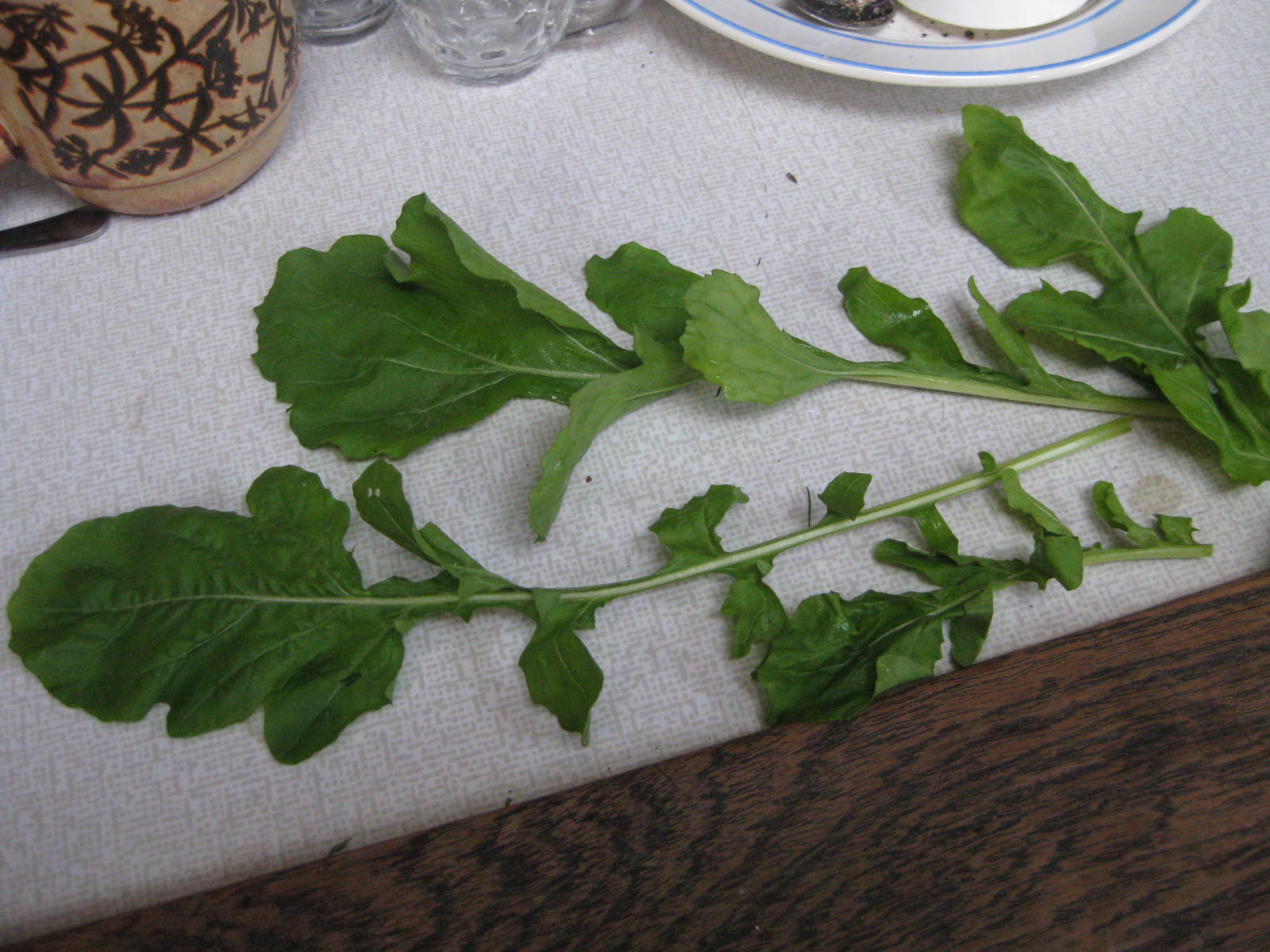 Inzwischen kenne ich den namen der beiden Salat-Arten: der mit den gefiederten Blättern ist eine Art unsres Ruccola, die RAUKE! Hier heißt sie Rokko. Und diese rundlichen dickblättrigen glatten Blättle an den saftigen Stängeln ist der PORTULAK. Ich hatte meine Bio-Bauern gefragt und prompt kann heute die Antwort-Email. Nett!