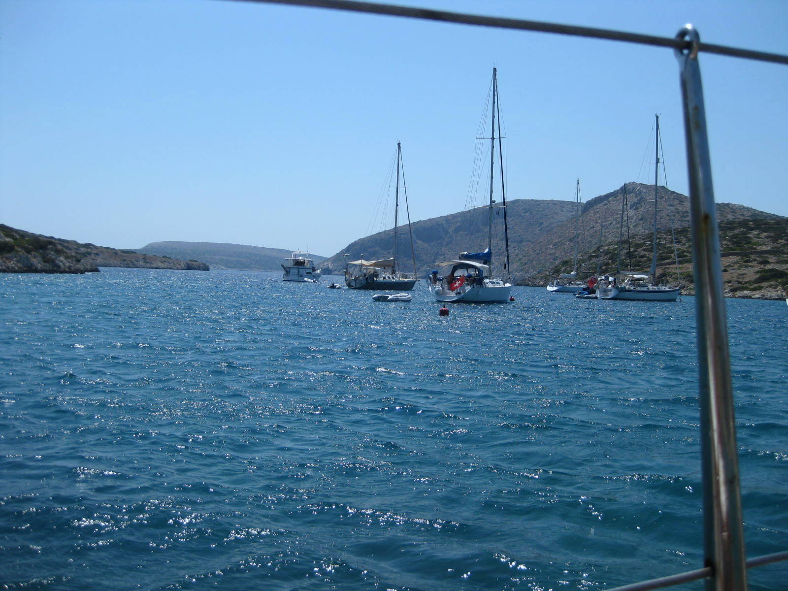 Am Morgen noch ziemlich stille See, also los um 5 und dann segelten wir 11 Stunden weiter…bis in die südliche Bucht von Leros.