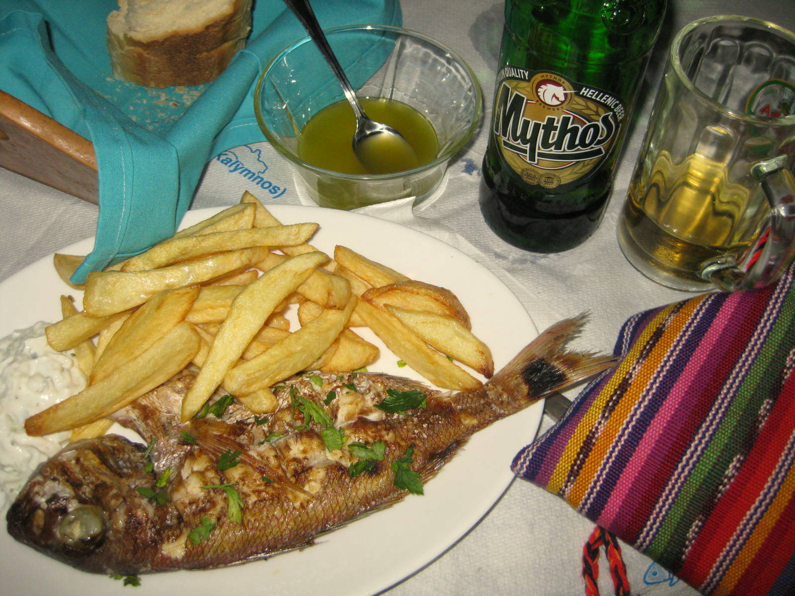 Wir liefen mit Stirnlampe hoch zu dem Biobauern, speisten gebackenen Schafskäse, griechischen Salat, „Casserol“ mit Lamm+Ziege, tranken das erste Mythos-Bier, eine kleine Kupferkanne Retsina… Den traumhaft hellen Sternenhimmel mit der Milchstraße und rechts vom Ende mein geliebter Skorpion…