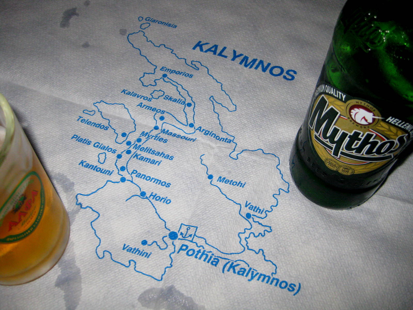 Eine Pita, ein Mythosbier beim Gyrosmann, der mit mir griechische Lieder sang, und dann schenkte er mir die 2 als Souvenir gewünschten 2 Bierkrügle! Die 2 Krügle vom Leipziger „Bayr.Bahnhof“ haben nun Geschwister aus Naxos!!