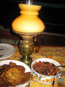 Zucchiniküchle u. geröstete Brotwürfele im Gewitter in Korfu
