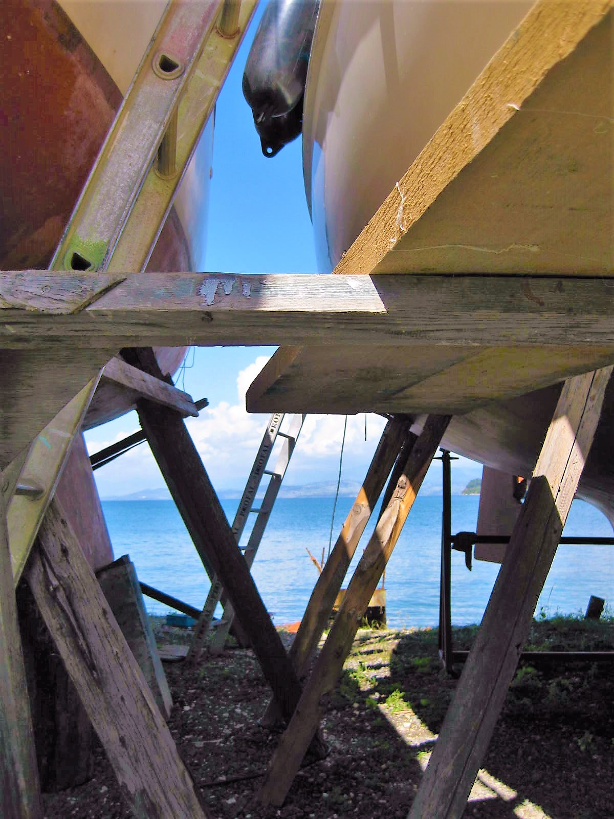Corfu boatyard (1)Zw. Pfählen auf die Leiter