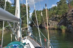 Durch enge Fahrwasser an den Schären-Ankerplatz