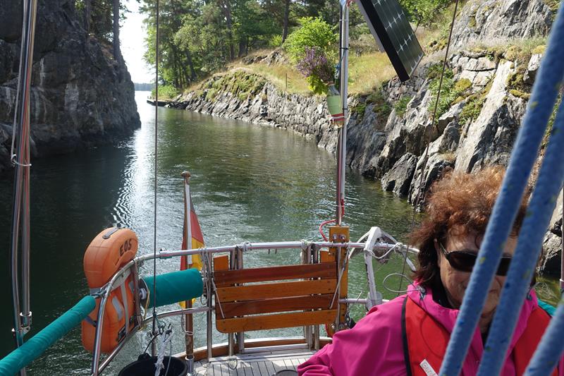 Durch enge Fahrwasser an den Schären-Ankerplatz