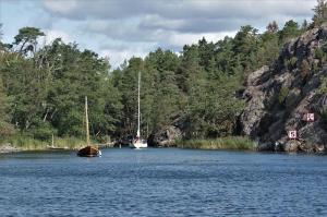 Durch enge Fahrwasser an den Schären-Ankerplatz