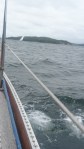 Ruhig war die Nacht – am Felsen vertäut. Weiter geht’s: Vorhersage 3-4 bft aus Süd. Heute segeln wir das erste Mal mit der reparierten Fock! Gleich dreht Gerhard aber ein Reff ins Groß… Gegenwind mit 4 und 5 Windstärken.