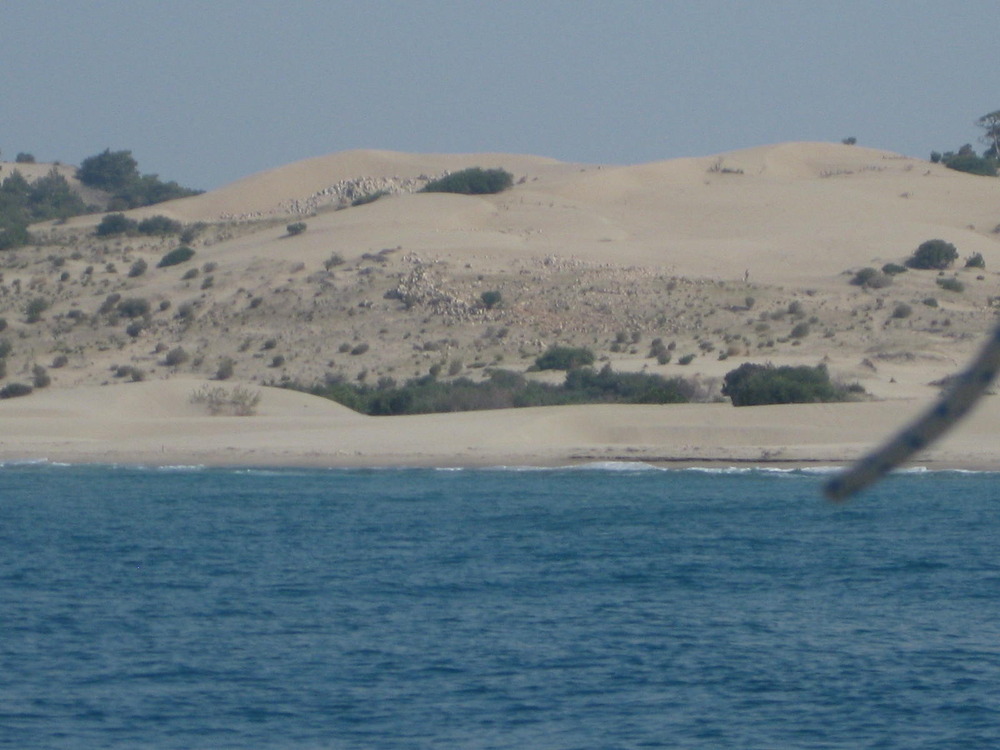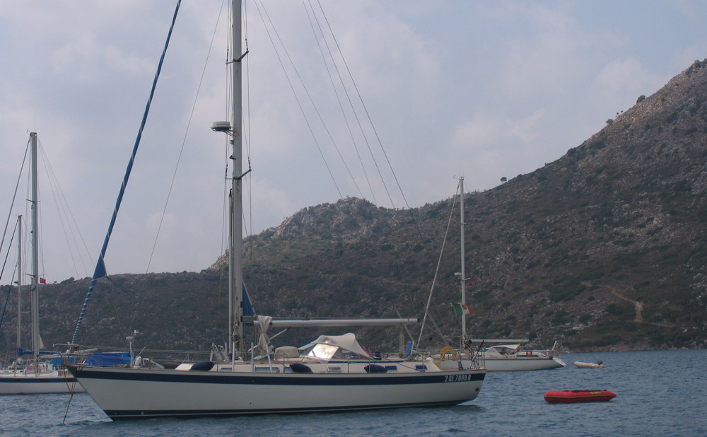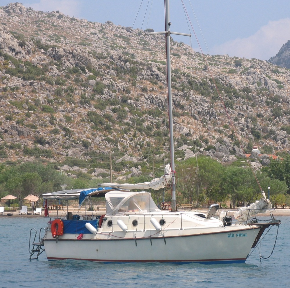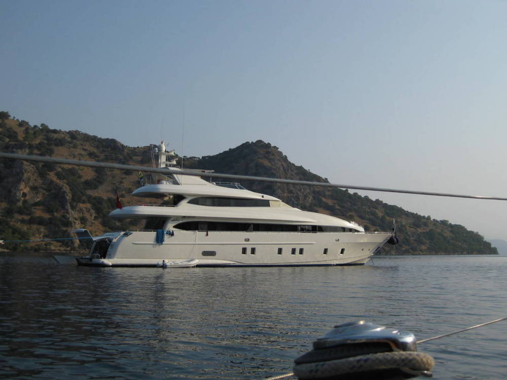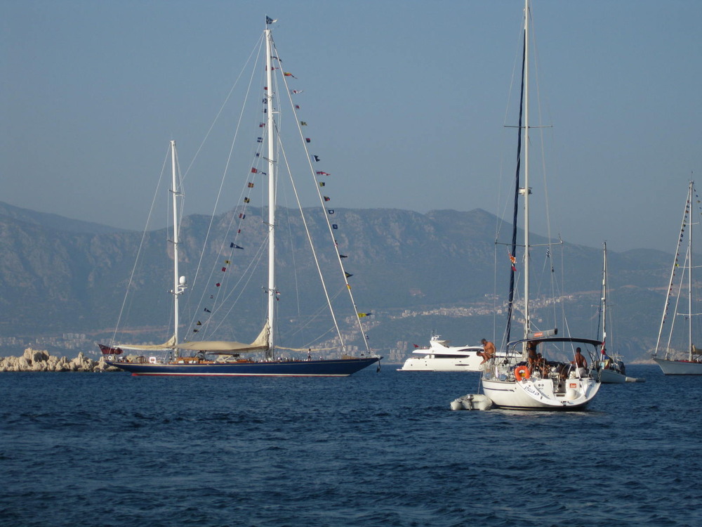 Wir kreuzen bei schönem 2-3er „Bodensee-Wind“ über den „Fjord“ und sehen die hochsteigenden Rauchwolken von 2 Waldbränden, einer ganz nah an der Powerstation, dem Stromkraftwerk! Löschflugzeuge kommen schon nach 10 Minuten, nach 20 ist die Rauchwolke klein geworden. Kompliment den Löschern. Wir ankern nach 8 Stunden herrlichem Segeln in einer ganz kühlen Bucht, nordwestlich von Cöckertime Bay: da mündet ein Bach und oben auf dem 27° warmen Meerwasser „schwimmt“ das fühlbar viel kältere Süßwasser. Wunderbar zum Schwimmen. Das sagen auch die Bayern aus Ingolstadt neben uns. Kleine Boote von den Tavernen fahren an alle Yachten ran und bieten Taxidienste an für ihre Restaurants. Sogar Kamel-Reiten gäb’s an Land, und Folklore mit Life-Musik. Ich koche gern selber: Salzkartoffeln und Zigeunerpfanne aus Tomaten, roter und grüner Spitzpaprika, Zucchini, Aubergine, Corned beef, echt feurig scharf gewürzt.