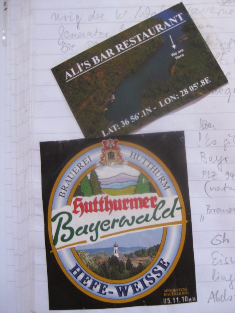 Mittags genießen wir das bei Ali’s Waldkneipe gekaufte kühle Bayerwald-Weißbier aus Hutthurm. Übrigens vertippte ich mich, glaube ich, bei der PLZ: 94116 Hutthurm! Köstlich. Dazu gibt’s griechische Ölsardinen in Zitrone, mit Oliven, Gurke und Tomate.