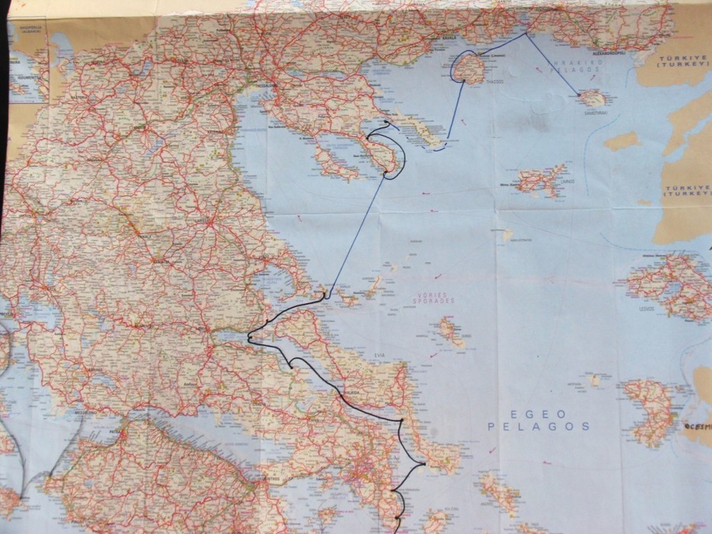 Ab 18 Uhr preschen urplötzlich brummende, heulende Sturmböen 7-8 in die Bucht, fegen über die viele vor Anker liegenden Yachten. Wie wild sausen die Schiffe 180° um ihre Anker, unheimlich diese wilde Jagd an ihren Fesseln. Ein Schauspiel wie am Bodensee beim Föhnsturm. Fast alle Skipper stehen nun am Bug vorne und wachen über ihre festgekrallten Anker, beobachten die schwere Kette. Wir haben 40 m draußen. Die EOS hält sich tapfer. Das Meer poltert gegen die Bordwand, rauscht in den Böen und schäumt weiß auf. Dann um 21 Uhr: R U H E! STILLE. Glatt die See. Nun tuckern die Schlauchboote eins nach dem andern an Land, landfein die Crews zum Essengehen in den Hafenlokalen.